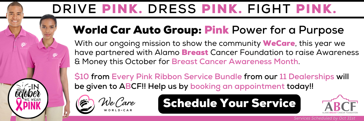 San Antonio, TX – September 4, 2025 – In honor of Breast Cancer Awareness Month, World Car Auto Group (World Car) is proud to announce its partnership with the Alamo Breast Cancer Foundation (ABCF) to launch the "Pink Ribbon Service Bundle"—a special service offering designed to help customers maintain their vehicles while supporting a vital community cause.